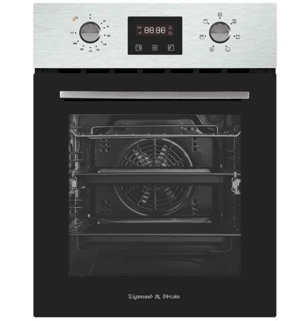 Стекло дверцы двойное оно остается холодным во время работы, так что можете приближаться к духовке, не боясь обжечься. Все другие стороны духовки Zigmund Shtain E 145 S тоже не нагреваются благодаря функции тангенциальное охлаждение, создающей вокруг агрегата холодный фронт.