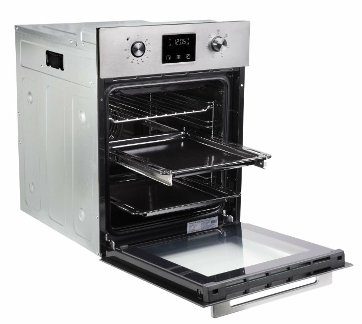 Во время работы духовки, охлаждающий вентилятор будет выводить лишний пар наружу и предотвращать чрезмерное нагревание внешних поверхностей прибора. Это необходимо для правильной работы прибора и равномерного приготовления блюд. После окончания процесса готовки, вентилятор будет продолжать работать. Вентилятор отключится автоматически, когда охлаждение будет завершено. Внутреннее покрытие выполнено из специальной эмали, легко очищающейся традиционными способами.
