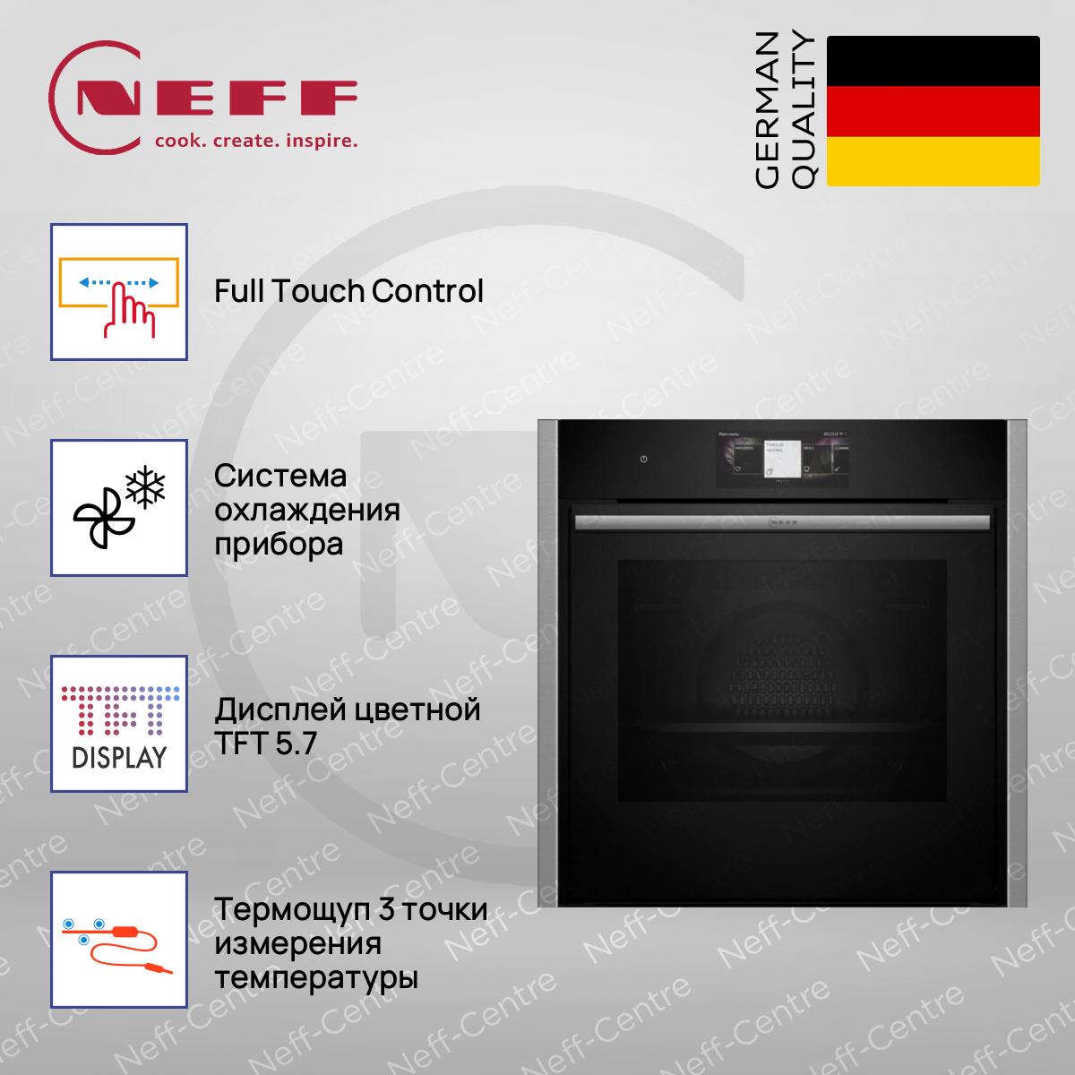 Прибор оснащен сенсорными переключателями Full Touch Control и TFT-дисплеем, на котором отображается все необходимая информация. Электронный контроль температуры и индикация фактической температуры в духовке обеспечивают точность приготовления блюд. Функция Home Connect позволяет управлять прибором дистанционно с помощью смартфона или планшета.