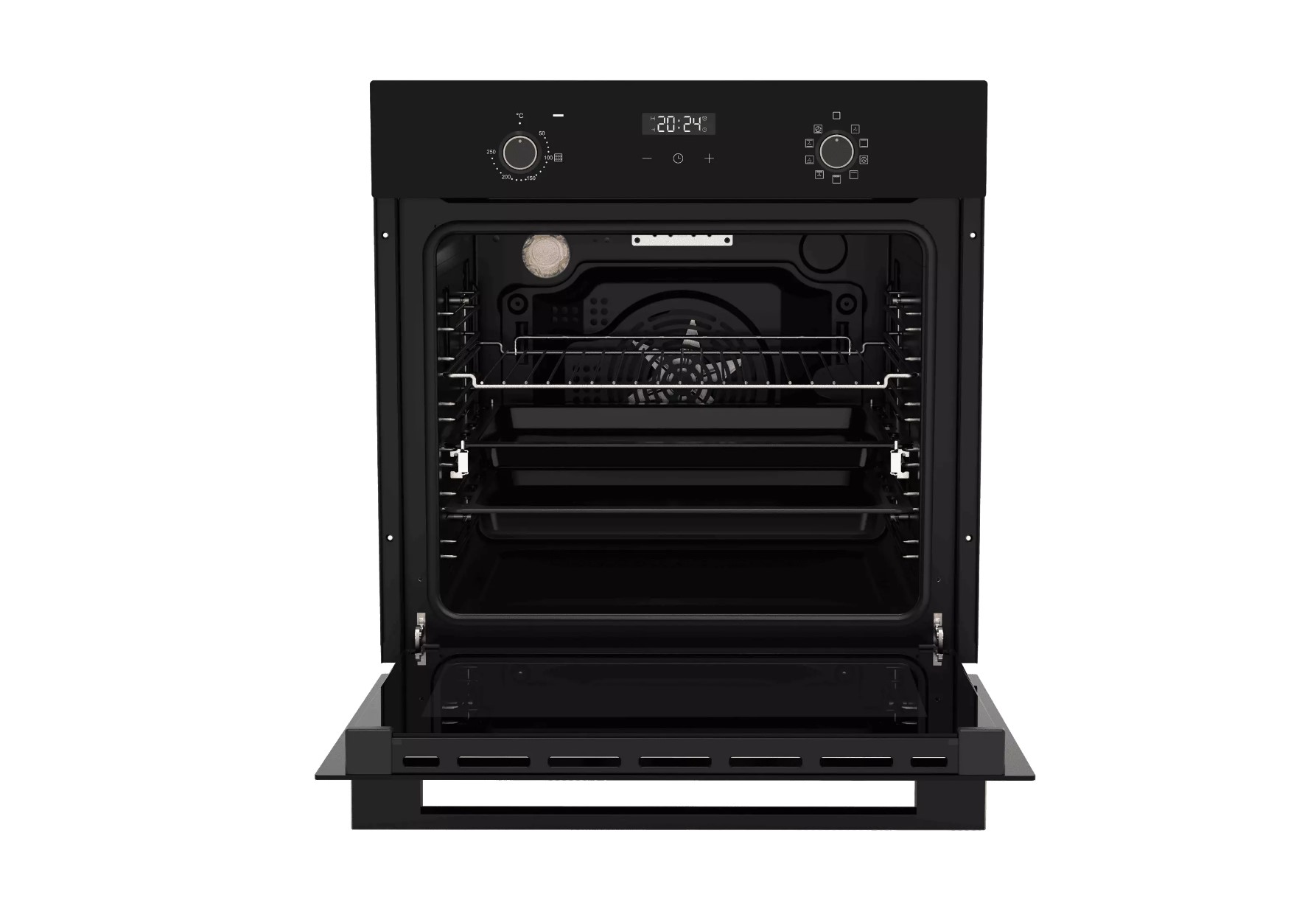 Удобная и безопасная установка противня и его извлечение. Телескопические направляющие облегчают использование духовки: противень не упадет, даже если выдвинут полностью.
