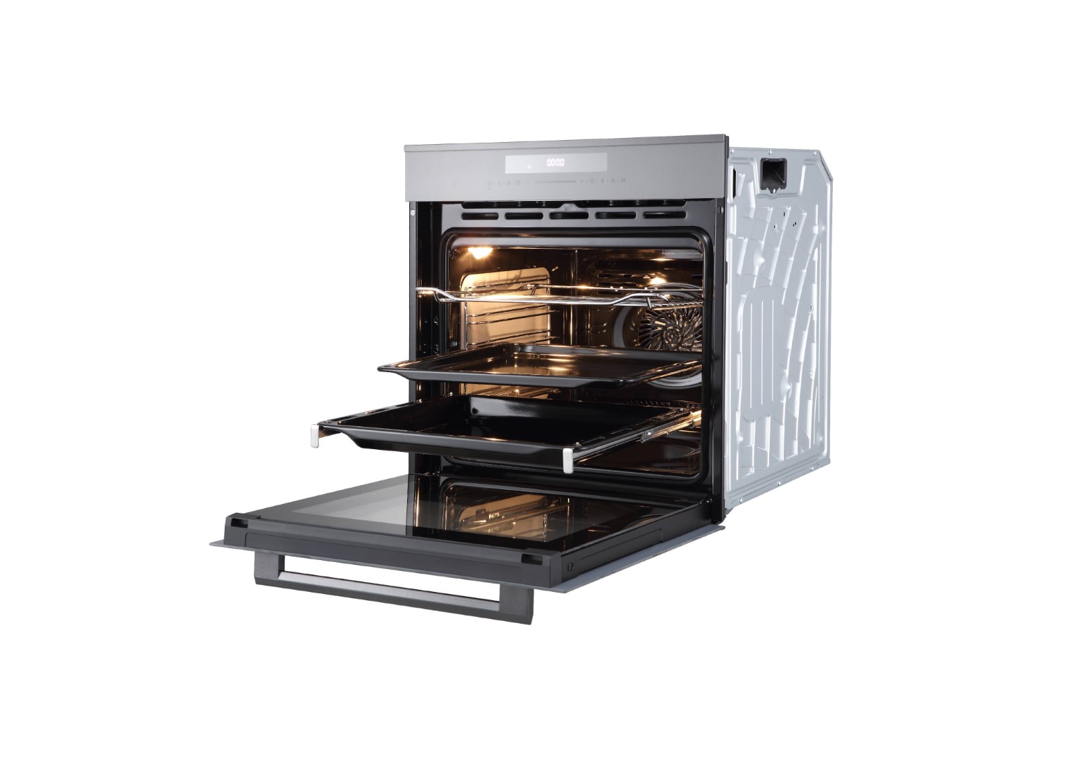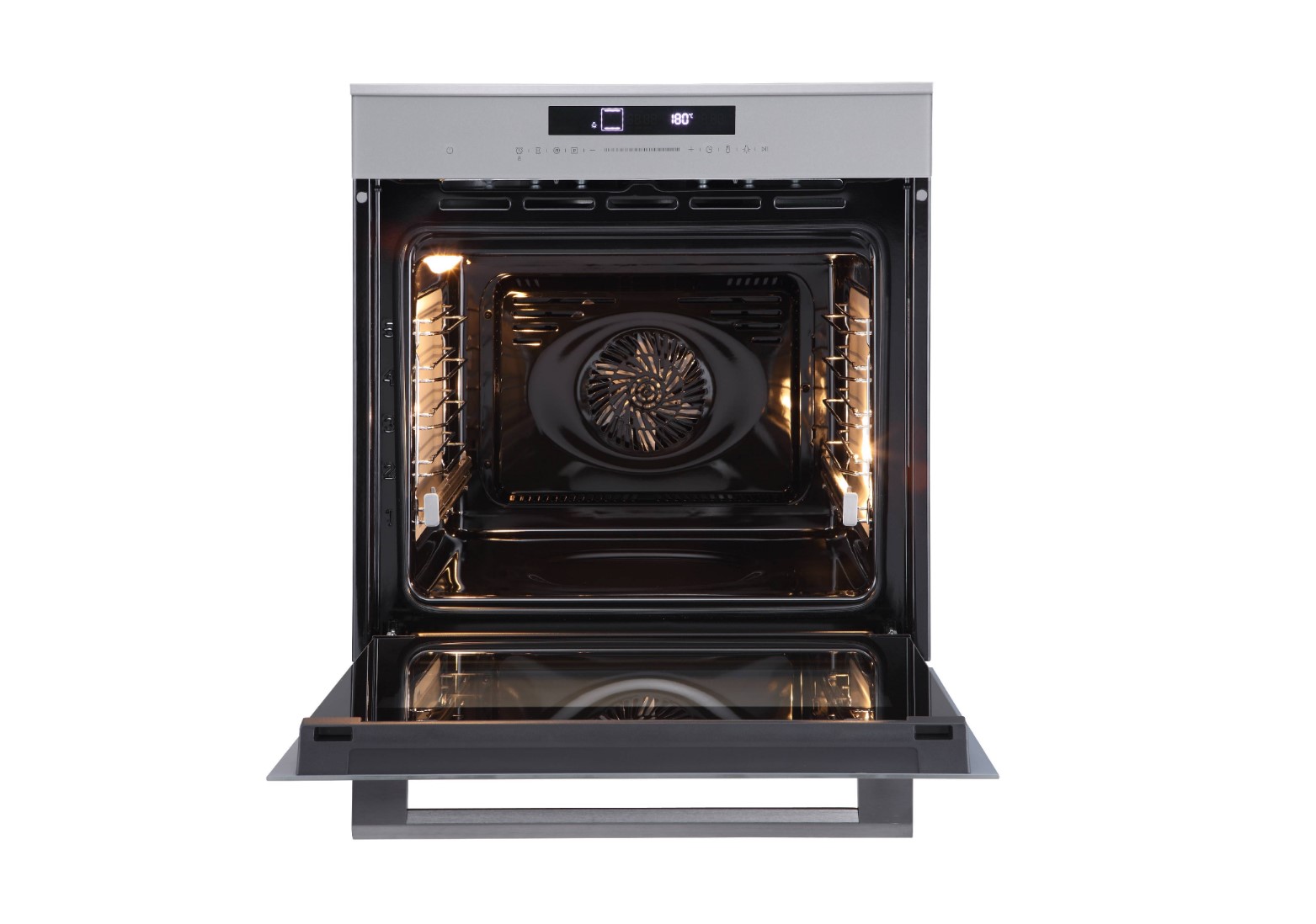 Объем: 72 л, подходит для крупных противней и готовки на нескольких уровнях.