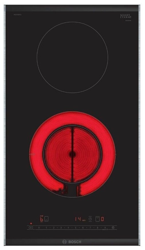 Особенностью данной модели является наличие двух конфорок, одна из которых двухконтурная, что позволяет выбрать оптимальный режим готовки для различных блюд. Система управления DirectSelect с сенсорными элементами управления и LCD-дисплеем делает использование панели максимально удобным и интуитивным. Всего предусмотрено 17 ступеней мощности, что позволяет точно настроить температуру для приготовления различных блюд.