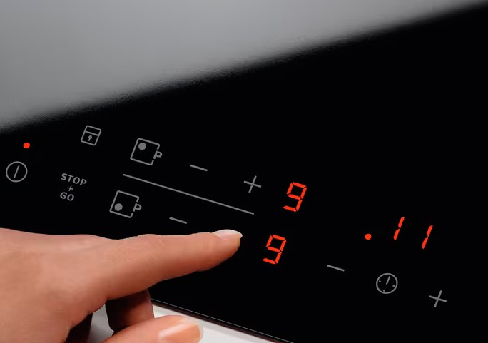 защитное отключение конфорок, индикатор остаточного тепла, кнопка блокировки панели