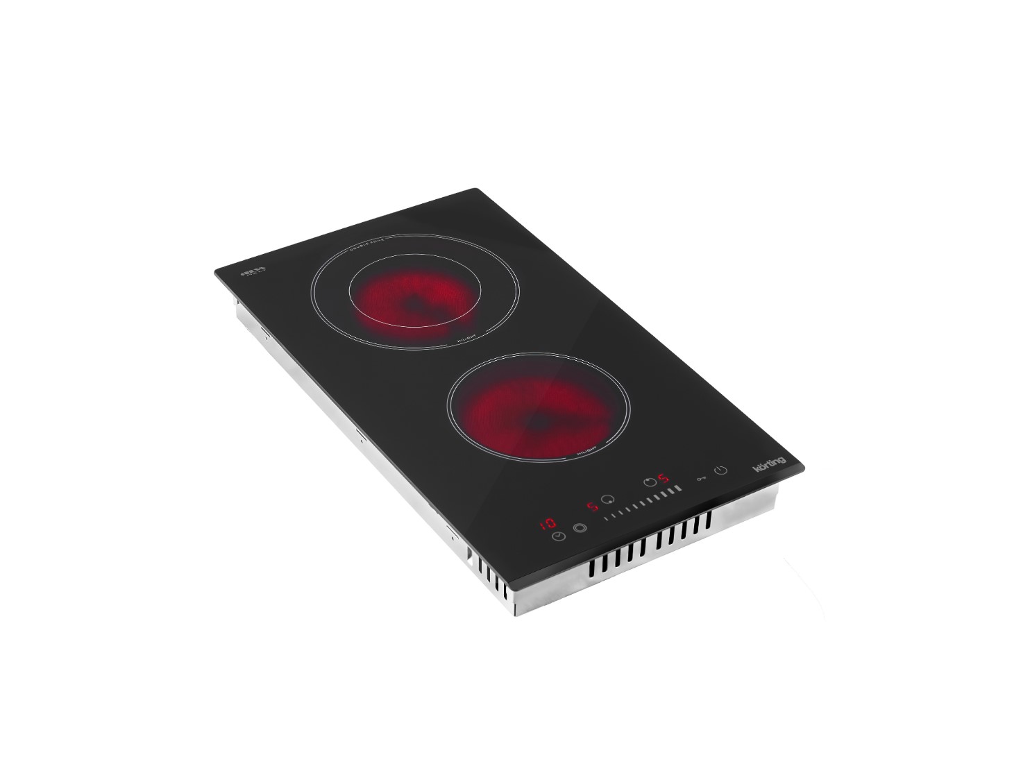 Тип: независимая электрическая встраиваемая панель, стеклокерамика, черное стекло, ширина около 29–30 см.