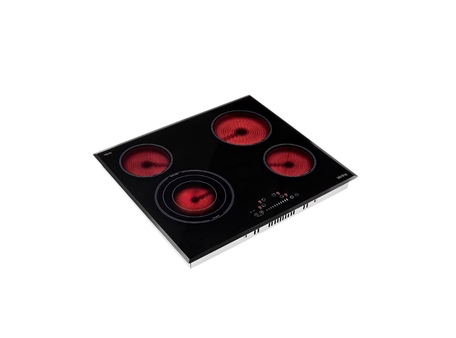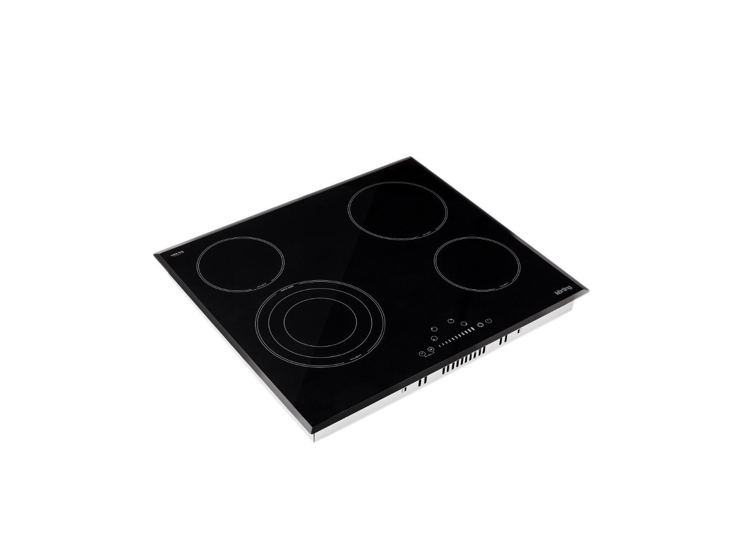 Тип: независимая электрическая встраиваемая панель, черная стеклокерамика со скошенными краями, современный плоский дизайн.