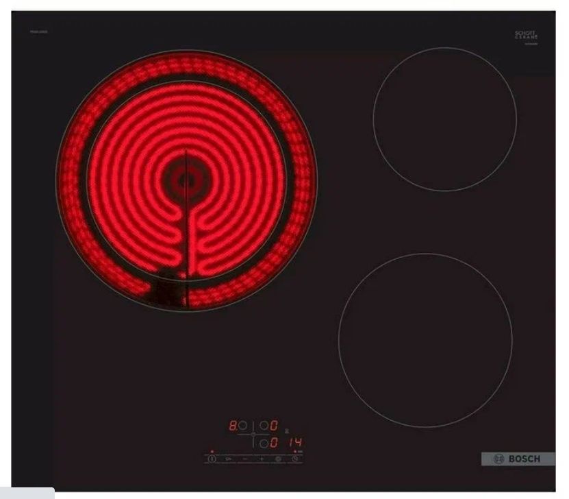Поверхность относится к типу Hi-Light и позволяет точно регулировать нагрев — всего предусмотрено 17 ступеней мощности. Сенсорная панель TouchSelect делает управление интуитивным: легко задать уровень нагрева, выбрать время работы и использовать таймер с автоотключением для каждой зоны отдельно.