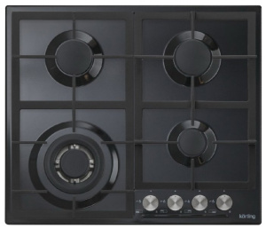 Панель оснащена 4 газовыми конфорками: мощная WOK‑конфорка 3,8 кВт расположена спереди слева, две средние по 1,75 кВт и одна малая на 1 кВт. Перенос WOK‑зоны на передний край облегчает доступ к объемной посуде и снижает риск перегрева фартука и навесных шкафов.