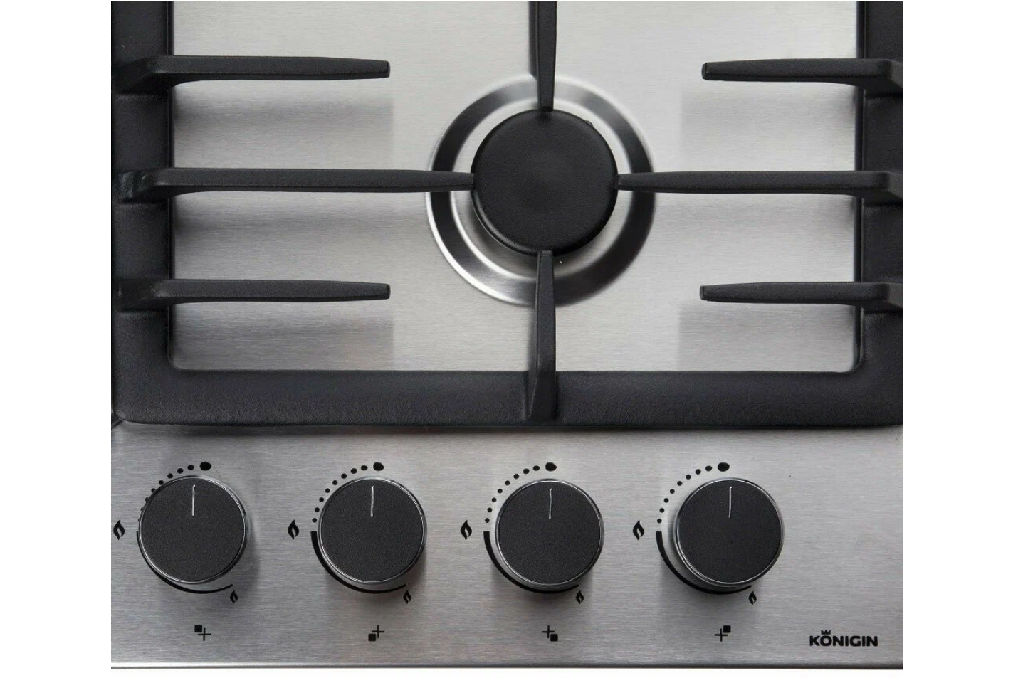 • Тяжелые цельнометаллические ручки управления с отделкой термостойким пластиком в цвете варочной панели
