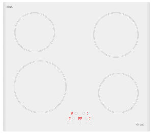 Поверхность: белая стеклокерамика со скошенными боковыми краями, современный минималистичный дизайн.
