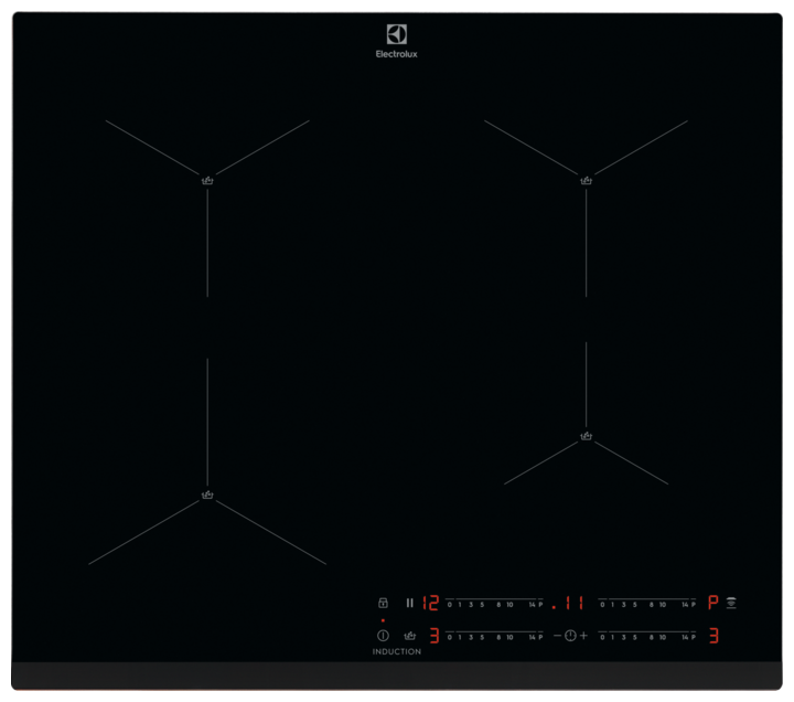 Индукционная варочная панель Electrolux EIS62443, 4 конфорки, Hob2Hood, Booster, сенсорное управление, чёрная стеклокерамика.