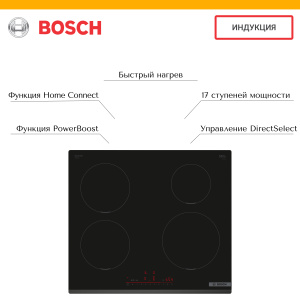 Варочная панель оснащена системой управления DirectSelect, которая обеспечивает быстрый и точный выбор требуемой степени мощности. Всего доступно 17 ступеней мощности, что позволяет точно настроить температуру приготовления. Функции PanBoost, ReStart и PowerBoost позволяют быстро нагревать посуду, продолжать приготовление после паузы и увеличивать мощность нагрева для более быстрого приготовления. Благодаря функции PowerManagement, панель оптимизирует потребление энергии, что позволяет экономить на электроэнергии.