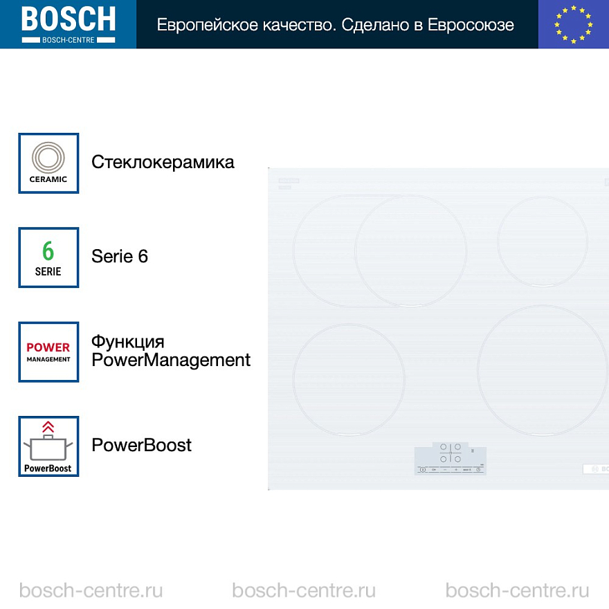 Функция QuickStart обеспечивает быстрый старт приготовления, а функция PowerBoost - увеличение мощности для более быстрого приготовления. Функция PowerManagement помогает контролировать потребление энергии, что делает использование панели не только удобным, но и экономически выгодным. Также стоит отметить наличие таймера с функцией отключения для каждой конфорки, что позволяет избежать перегрева и обеспечивает безопасность использования. Варочная панель Bosch PIF612BB1E оснащена защитным отключением, что предотвращает возможные несчастные случаи. Минимальная толщина столешницы для установки панели составляет всего 16 мм, что позволяет встраивать ее даже в самые тонкие столешницы. С учетом всех вышеупомянутых характеристик и функций, индукционная варочная панель Bosch PIF612BB1E - это высококачественное, функциональное и безопасное решение для вашей кухни.