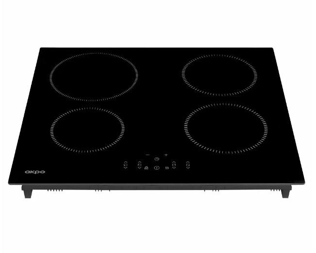Прибор нагревает непосредственно посуду с едой, которую нужно приготовить. Каждая из конфорок имеет 9 уровней мощности и индикатор остаточно тепла. Диаметр их составляет 16, 18 и 21 см. Кнопка блокировки работы и автоматическое отключения – решения в пользу безопасности использования индукционной варочной поверхности Akpo PIA 6094012CC BL.