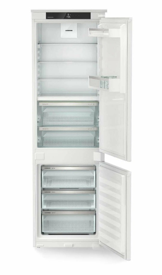 Встраиваемый прибор проще разместить в комнате, даже если общий метраж не такой уж большой. Вы можете спрятать его за декоративной панелью от мебельного фасада — советуем заранее определить нишу и заказывать панели исходя из типа крепления к двери. Способ монтажа в данной модели: скользящее крепление двери (система door sliding) Вы можете поменять направление открывания двери, так как упор переставляемый и ее можно перевесить на другую сторону. Такая функция открывает больше возможностей для установки. Холодильник с морозильником обладает всеми опциями, которые чаще всего ищут и выбирают покупатели. Стандартная конфигурация — универсальный вариант для любой квартиры. Количество камер: 2.