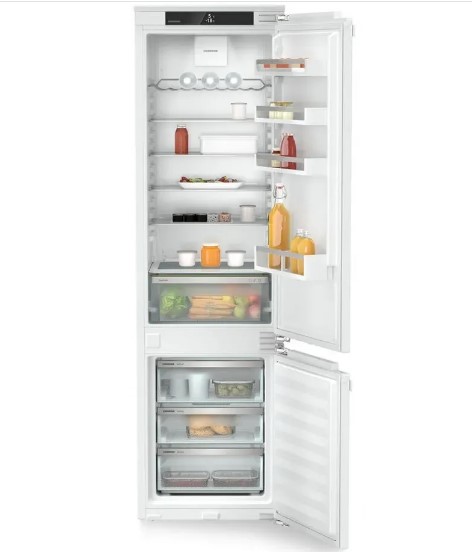 Температура устанавливается в диапазоне от +2°C до +9°C. Оснащение состоит из пяти стеклянных полок, из которых четыре регулируются по высоте. На двери – четыре кармана, один из них удобен для размещения бутылок и высоких пакетов с напитками. Кроме того, предусмотрена зона EasyFresh, представленная контейнером для фруктов и овощей в атмосфере оптимальной влажности.
