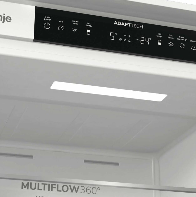 Встраиваемый холодильник Gorenje NRKI519141 получил общий полезный внутренний объем 275 л, этого пространства достаточно для хранения продуктов на семью из 3-5 человек. На передней панели оборудования предусмотрена сенсорная панель для регулировки температуры и небольшой дисплей для вывода текущих показаний. Уровень шума холодильника 35 дБ, что сопоставимо с приглушенным разговором, гул от работы не будет мешать людям в соседних помещениях. Технология No Frost автоматически размораживает камеры и не допускает образование наледи на стенках.