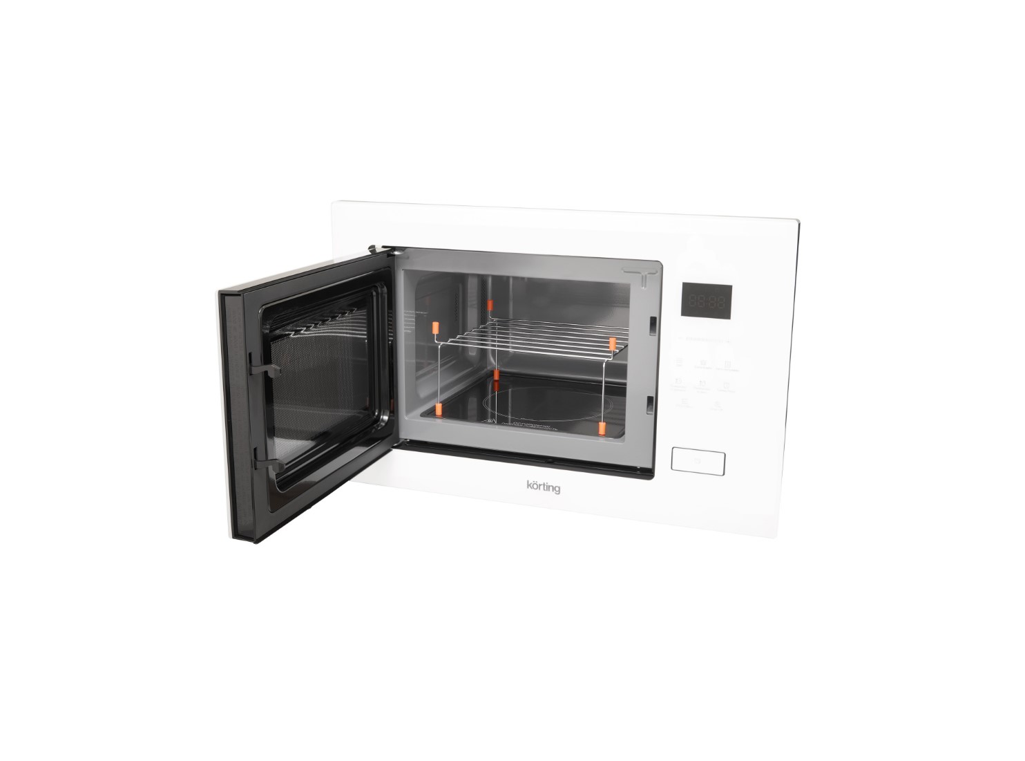 Тип: встраиваемая микроволновая печь, фасад из белого стекла, дизайн в едином стиле с белыми духовыми шкафами и другой встраиваемой техникой Korting.