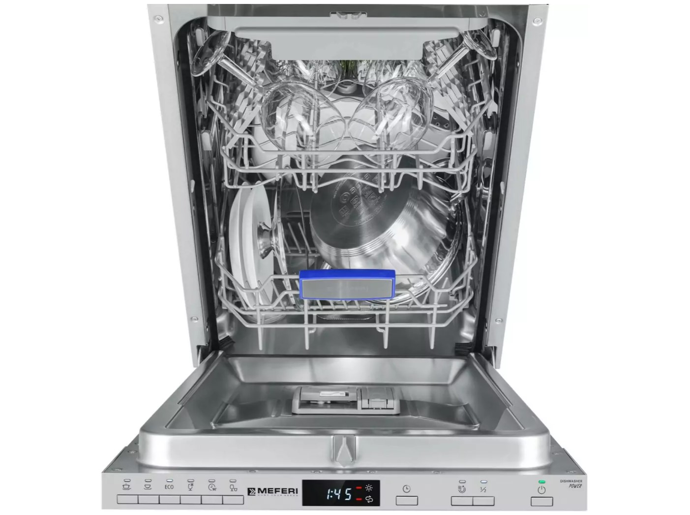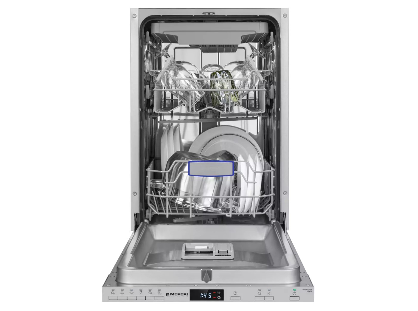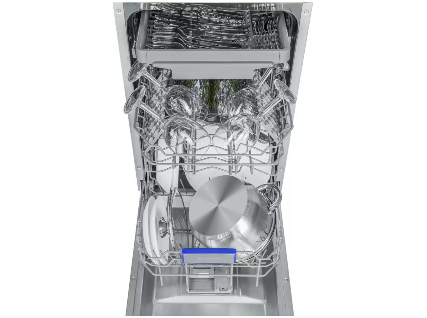 Уровень шума всего 49 дБ позволяет машине работать практически незаметно, что особенно ценно для открытых кухонь-гостиных или небольших квартир. Класс мойки «A» гарантирует качественное удаление загрязнений, а конденсационная сушка класса «A» эффективно испаряет влагу с посуды. Защита от протечек обеспечивает дополнительную безопасность, а функция отсрочки старта даёт гибкость в планировании — можно запрограммировать мойку на ночное время или более удобный момент. Машина адаптирована для использования универсальных таблеток «3-в-1», упрощая уход.