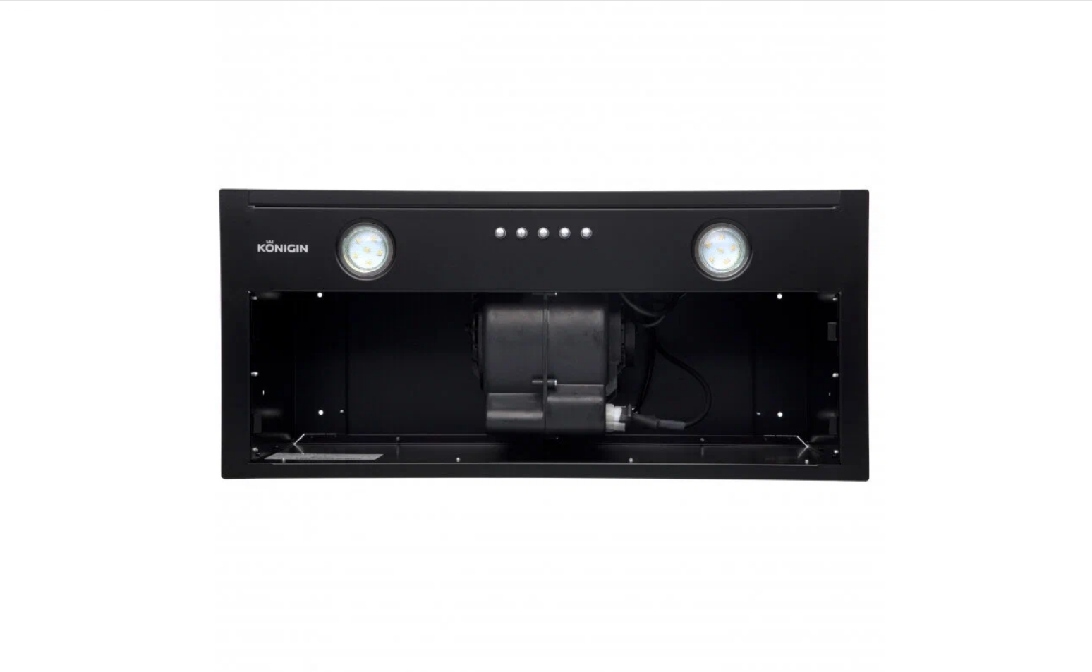 Полностью встраиваемая кухонная вытяжка устанавливается внутрь верхнего кухонного шкафа. Видимая часть вытяжки расположена над варочной панелью, не меняя внешний вид и стиль кухонного гарнитура.