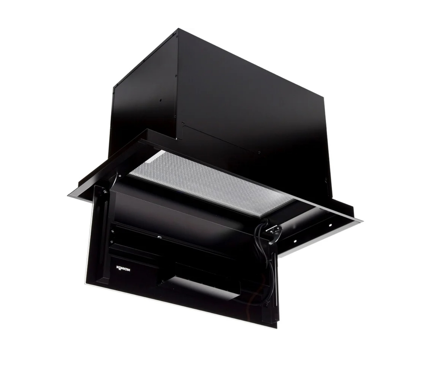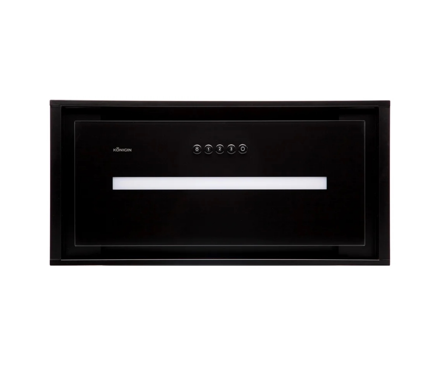 Стильное сочетание закаленного стекла и окрашенной стали. Декоративный люк из закаленного стекла скрывает пятислойный алюминиевый, жироулавливающий фильтр с усиленной конструкцией.
