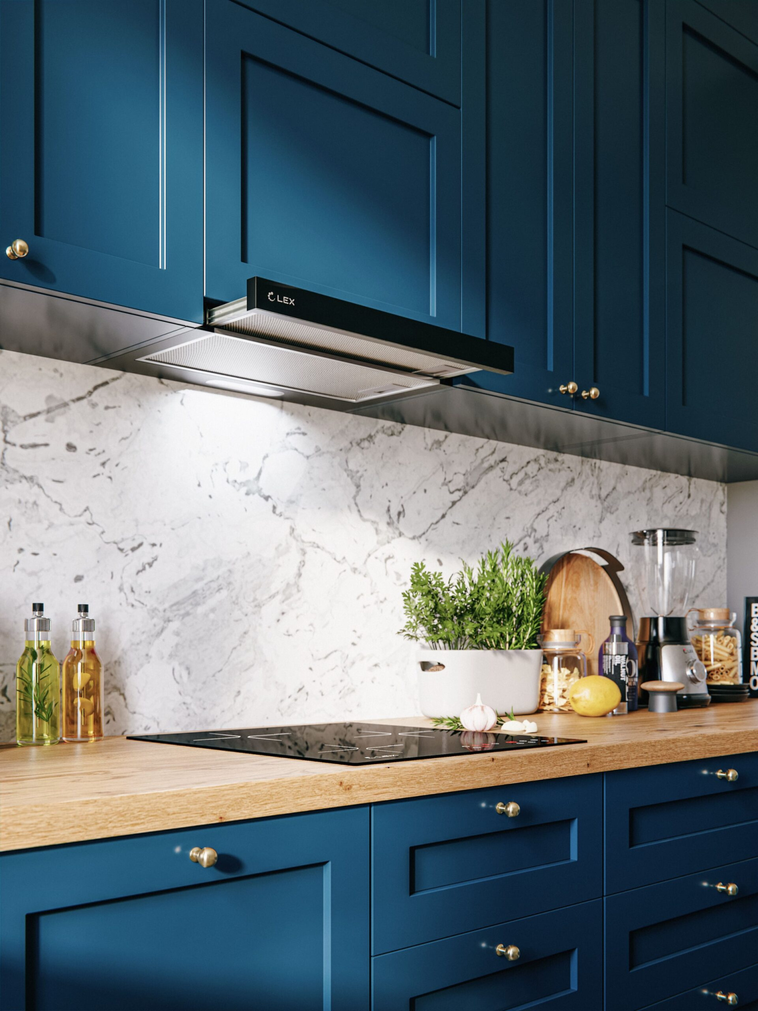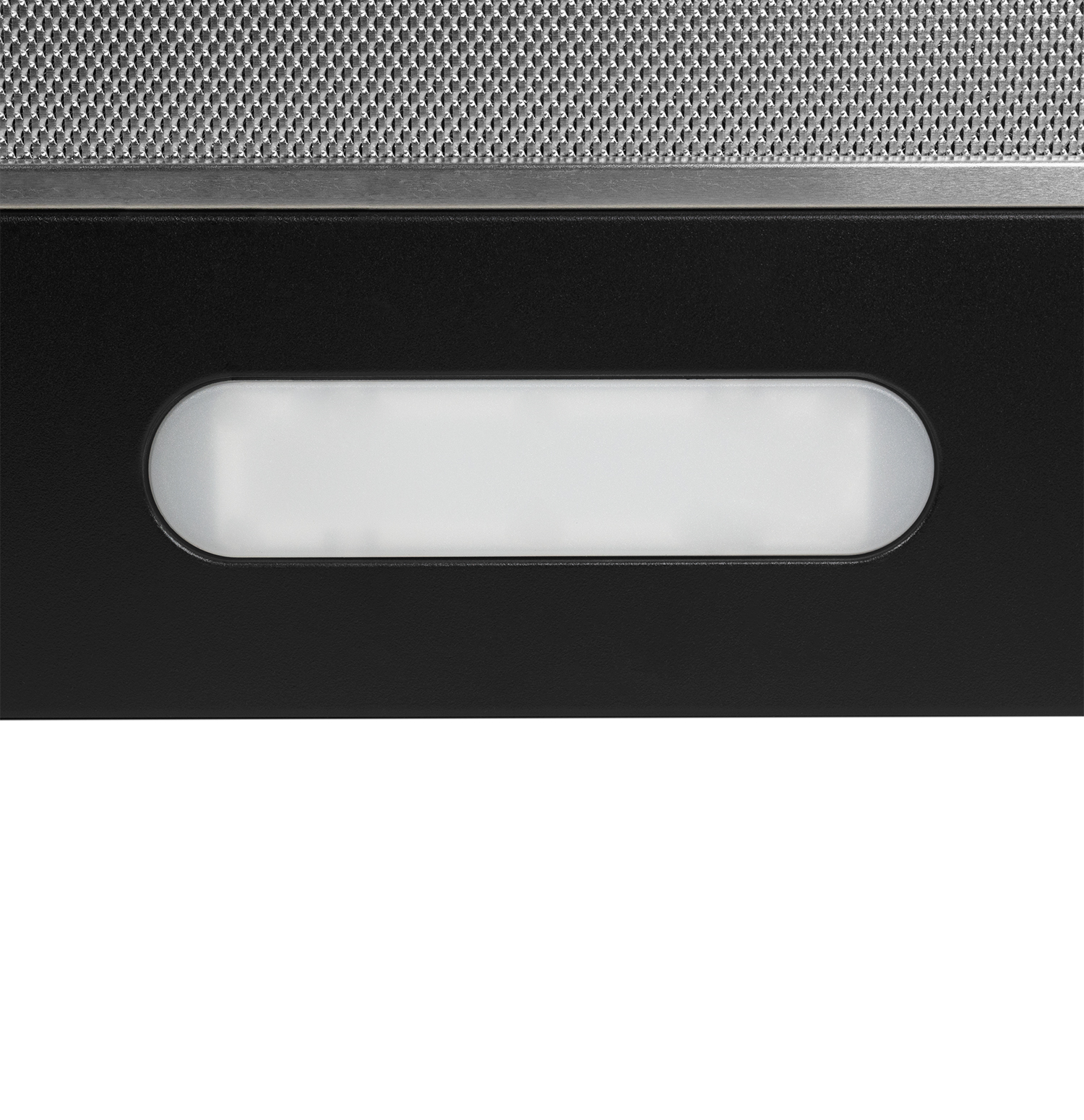 Компактная встраиваемая вытяжка эффективно и тихо очищает воздух, не мешая разговорам. При необходимости, можно увеличить зону всасывания. Для этого достаточно выдвинуть каретку.