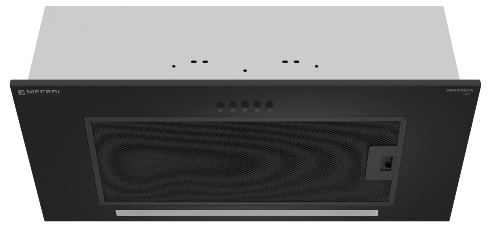 MEFERI SMARTBOX60BK LIGHT — современная и стильная встраиваемая вытяжка с максимальной производительностью 650 м³/ч, идеально подходящая для кухонь площадью до 30 кв.м. Ее элегантный черный корпус в дизайне «Total Black» гармонично впишется в любой интерьер, обеспечивая эффективное удаление пара, запахов и жира даже при интенсивной готовке.